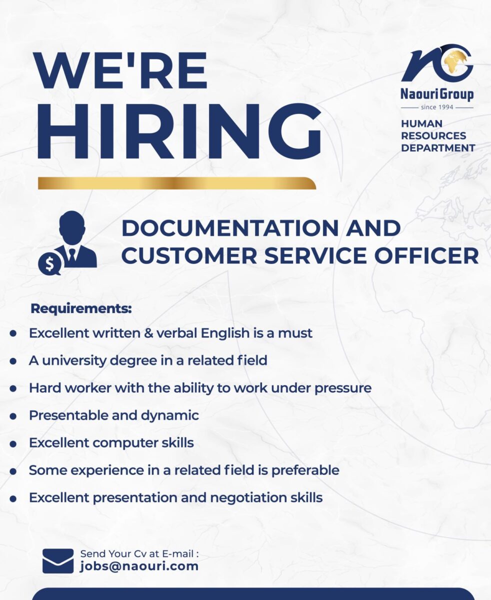 تُعلن مجموعة Naouri Group عن حاجتها لتعيين Documentation and Customer Service Officer للعمل في قسم الموارد البشرية بمدينة عمّان.