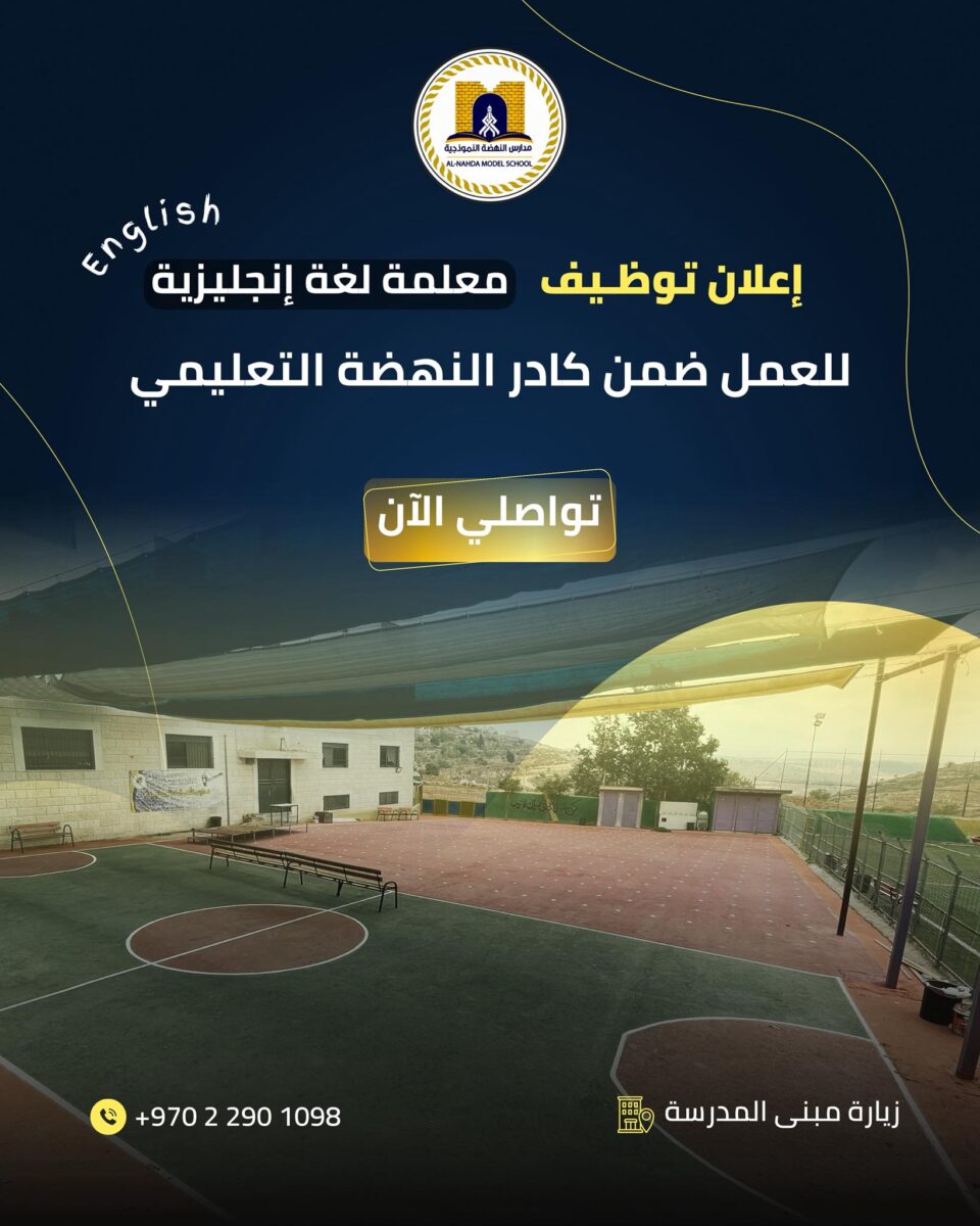تعلن مدارس ورياض أطفال النهضة النموذجية عن حاجتها لتعيين معلمات لغة عربية وإنجليزية – رام الله والبيرة 2025 للانضمام إلى الكادر التعليمي المتميز.