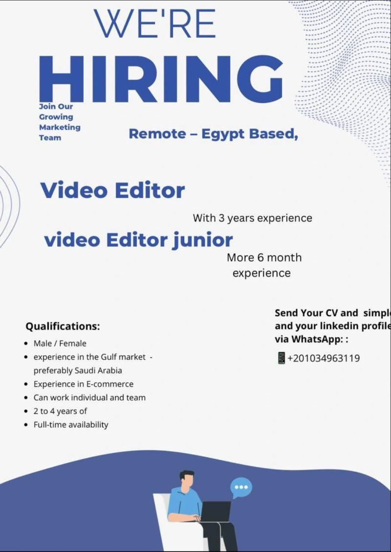 فرصة عمل عن بُعد – مطلوب Video Editor للعمل من مصر