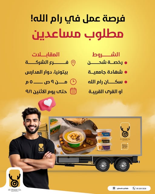 يفضل أن يكون المتقدم من سكان رام الله أو القرى القريبة.