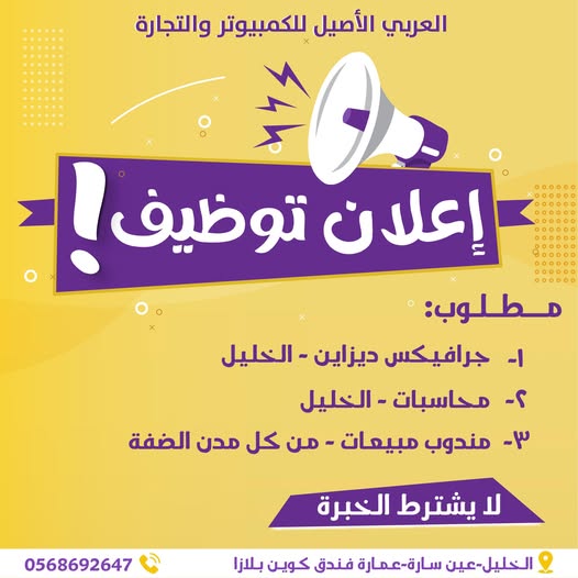وظائف شاغرة في شركة العربي الأصيل 2025 في الخليل