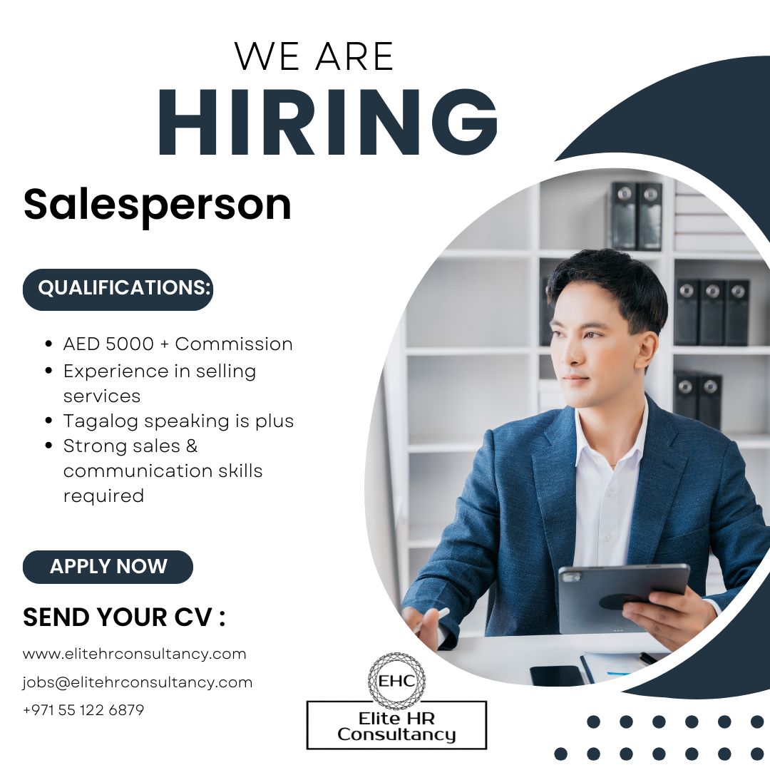 تعلن استشارات النخبة للموارد البشرية عن فتح باب التوظيف لمندوب مبيعات للانضمام إلى فريق العمل في دبي. إذا كنت تمتلك خبرة في المبيعات وخاصة في صناعة التعليم أو بيع الخدمات ولديك مهارات قوية في المبيعات والتواصل، فقد تكون هذه الفرصة لك.