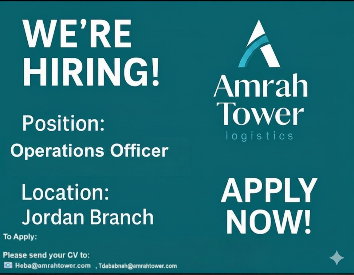 تعلن شركة برج عمرة للخدمات اللوجستية – الأردن عن توفر وظائف ضابط عمليات في عمان 2025 للعمل ضمن فريق محترف في مجال الشحن والخدمات اللوجستية.