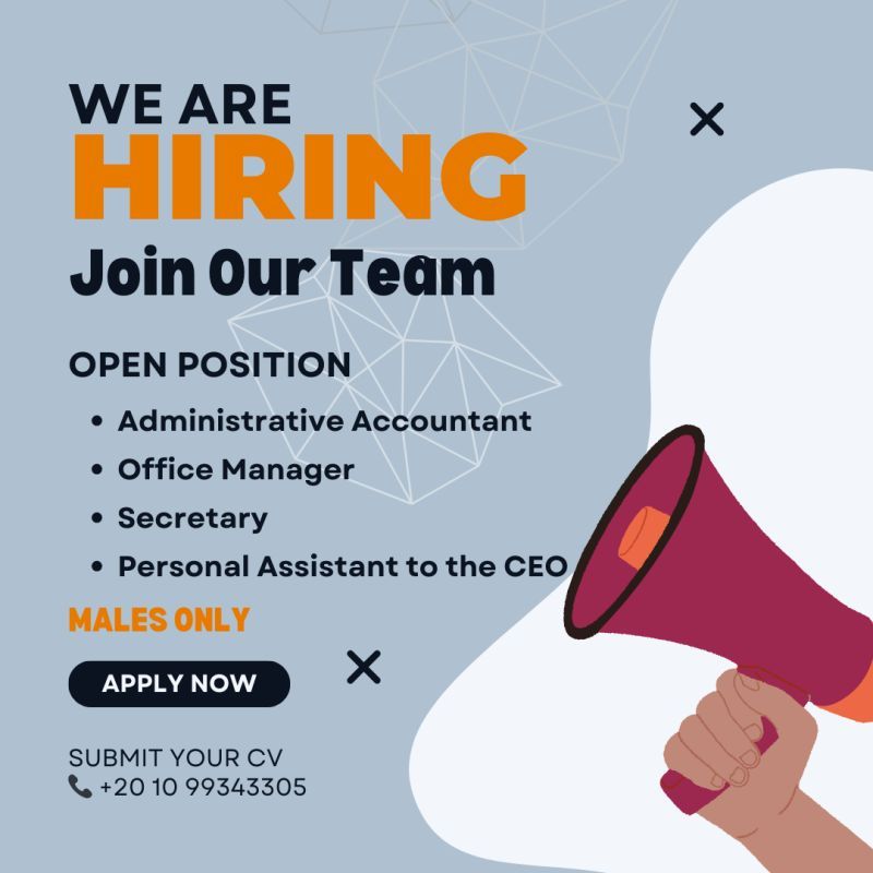 تُعلن شركة مصرية عن فتح باب التقديم لشغل عدد من الوظائف الإدارية ضمن فريقها المتنامي في مدينة القاهرة.