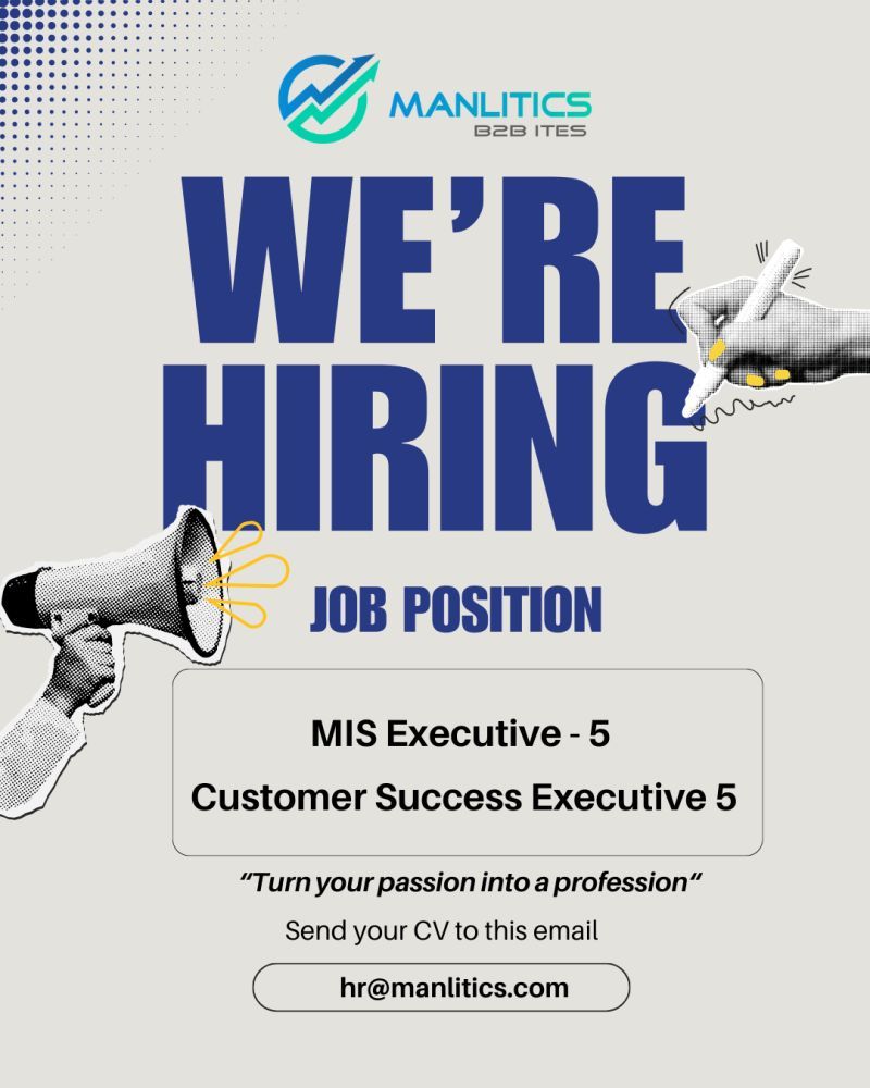 تعلن شركة MANLITICS B2B ITES عن توفر وظائف مميزة في مجال MIS ونجاح العملاء في دبي لعام 2025. إذا كنت تبحث عن فرصة لتطوير مهاراتك والانضمام إلى فريق عمل محترف، هذه هي فرصتك.