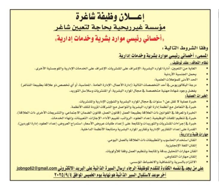📢 إعلان وظيفة شاغرة – عمّان 2025