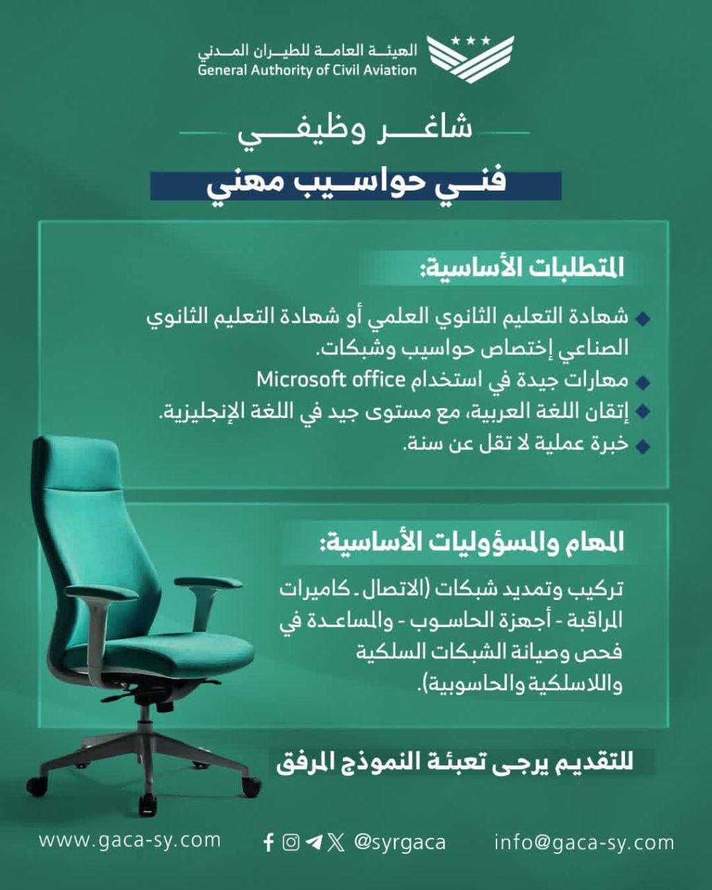 تعلن الهيئة العامة للطيران المدني عن فتح باب التعاقد لشواغر وظيفية فنية – 2025، للانضمام إلى فريق العمل المتخصص.