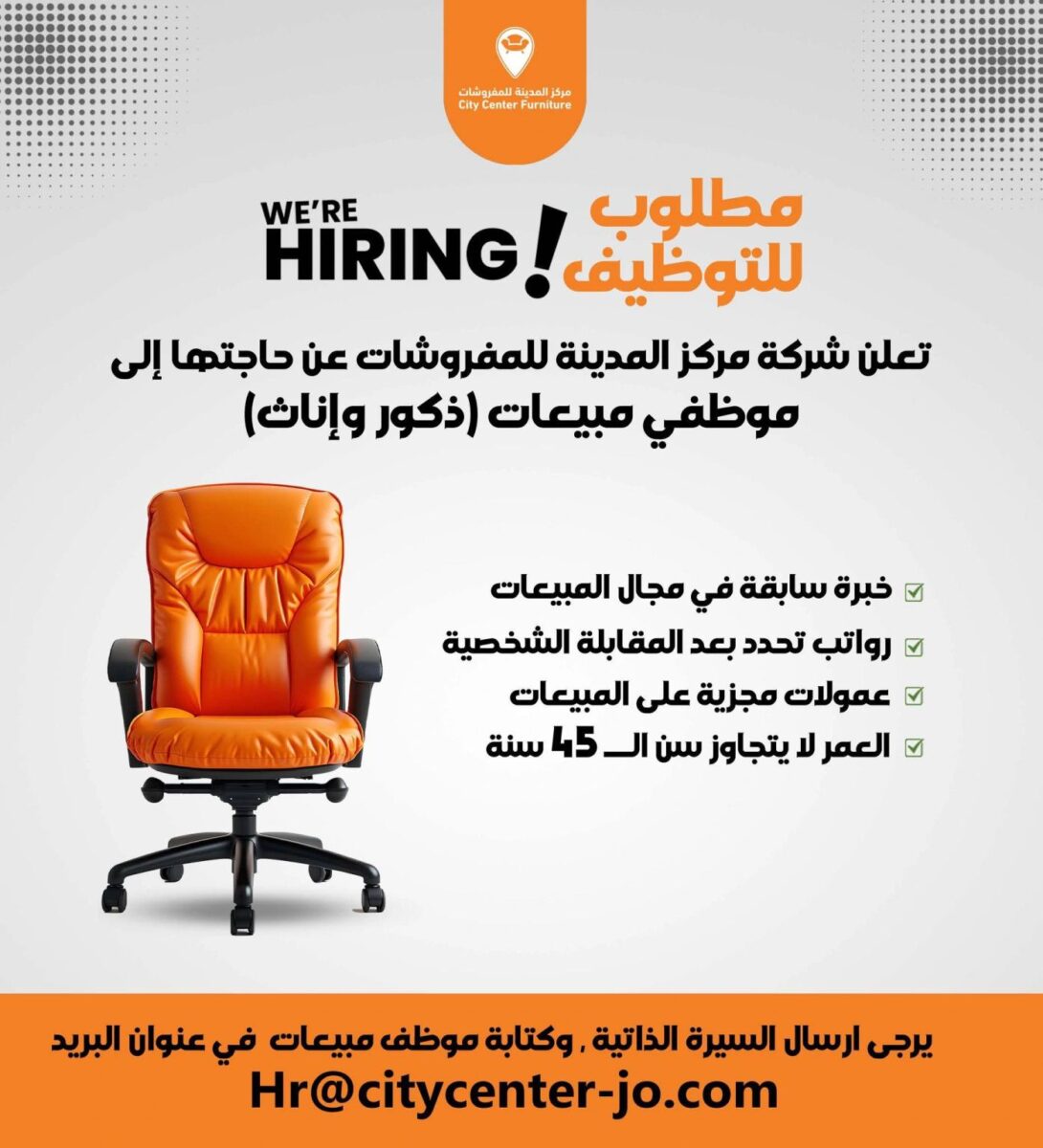 🔎 وظائف مبيعات في عمّان 2025 | مركز المدينة للمفروشات