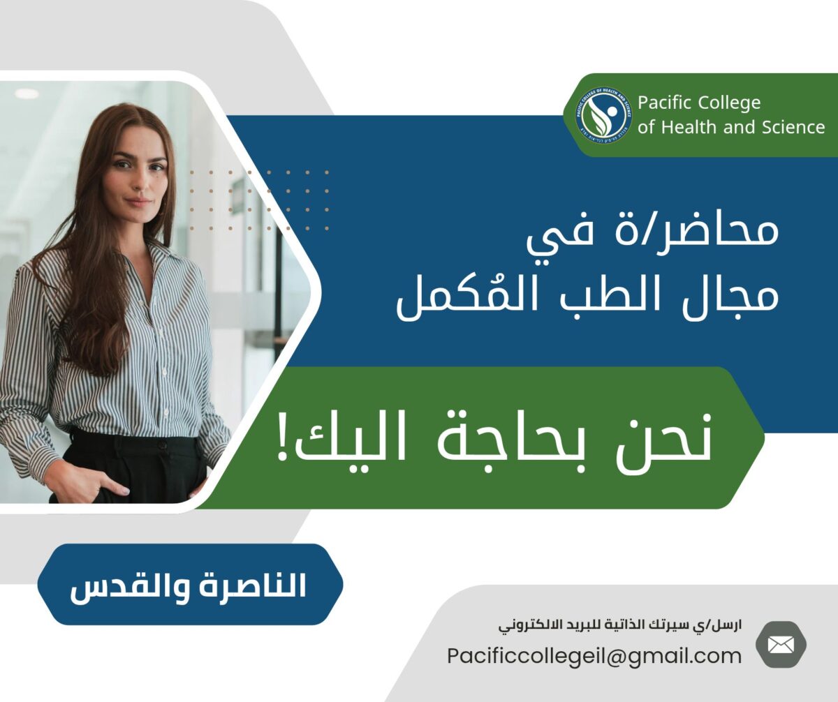 إعلان وظائف 2025 – محاضر/ة طب مكمل – كلية باسيفيك للصحة والعلوم – مناطق الداخل