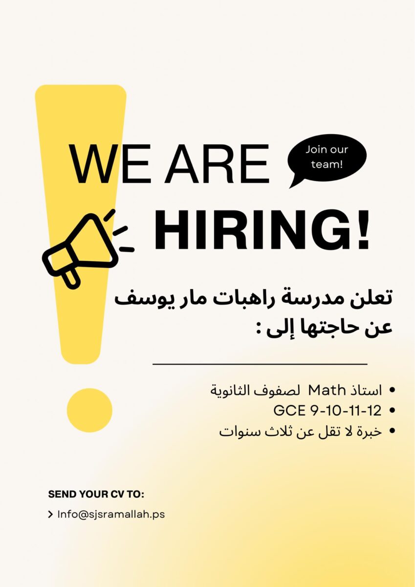 إعلان وظائف 2025 – مدرس/ة Math – مدرسة راهبات مار يوسف – رام الله
