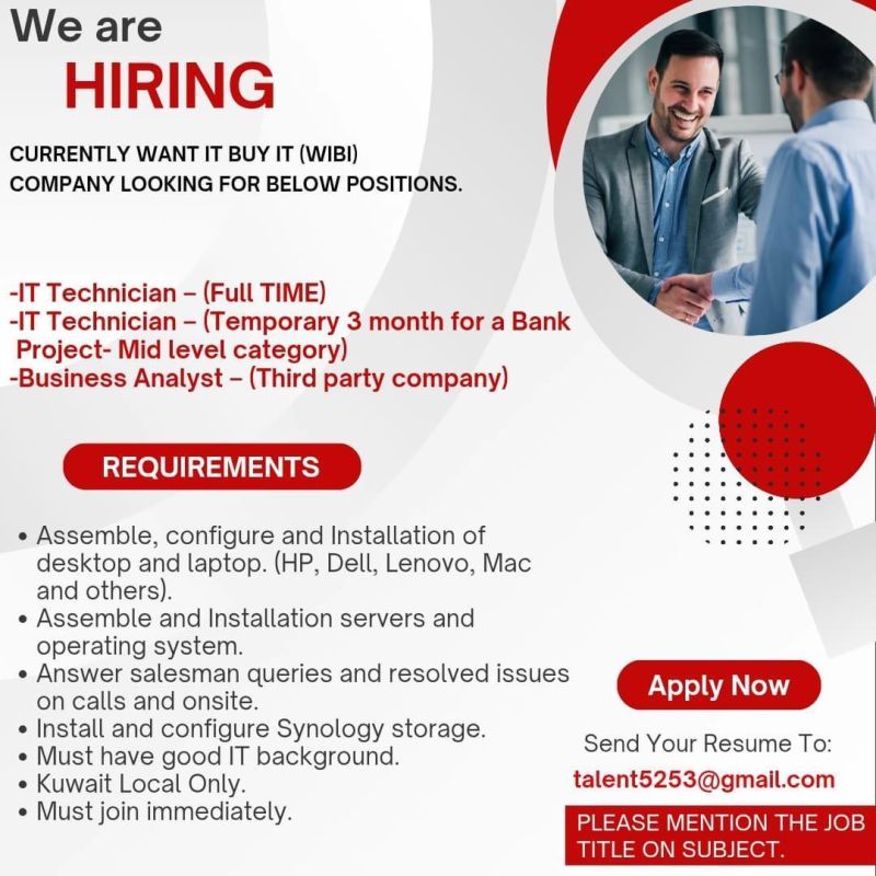 📢 فرص عمل تقنية في الكويت – وظائف فني IT ومحلل نظم 2025