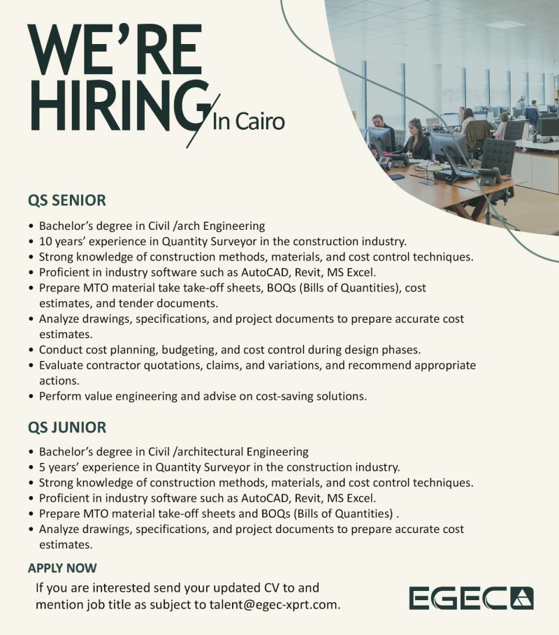 📢 فرص عمل في القاهرة لدى شركة EGECA