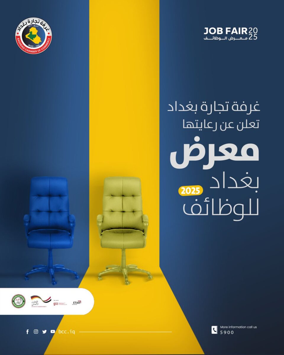تعلن غرفة تجارة بغداد عن رعايتها لـ معرض بغداد للوظائف 2025، الذي يهدف إلى: