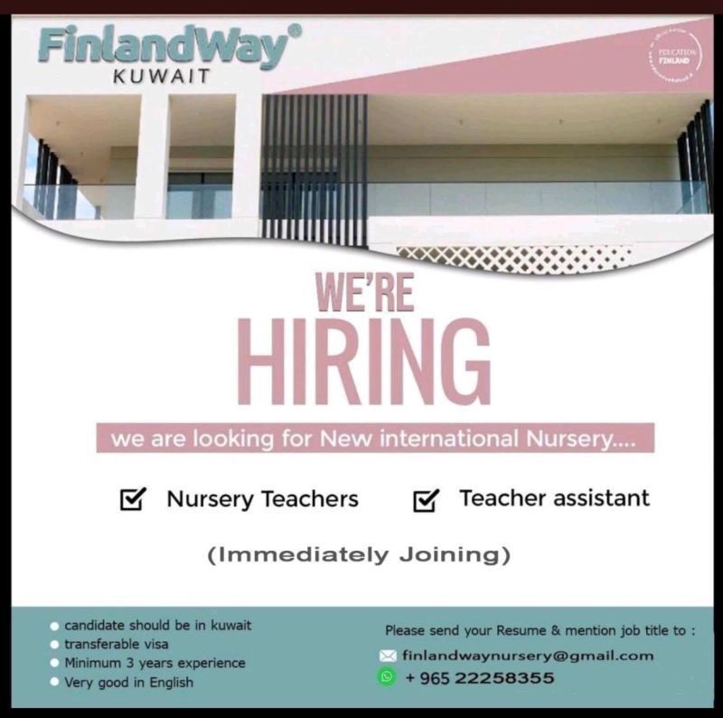 🎓 تُعلن حضانة FinlandWay الدولية في الكويت عن وظائف شاغرة لعام 2025