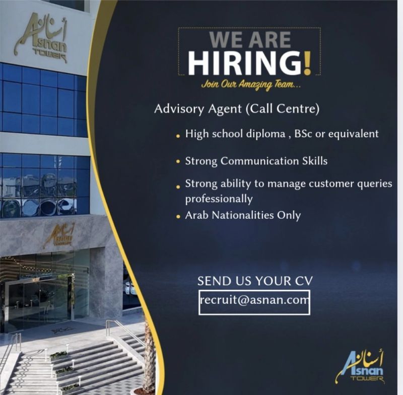 🔹 إعلان توظيف – Advisory Agent (Call Centre) – Asnan Tower – الكويت 2025
