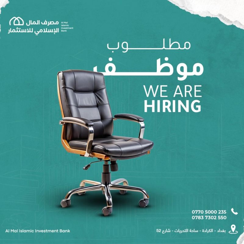 يعلن مصرف المال الإسلامي للاستثمار عن فتح باب التوظيف لعام 2025 في بغداد، العراق للوظائف التالية: