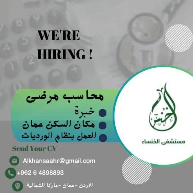 يعلن مستشفى الخنساء في عمان – ماركا الشمالية عن توفر فرصة وظيفية مميزة لتخصص محاسب مرضى، وذلك ضمن كوادره الطبية والإدارية.
