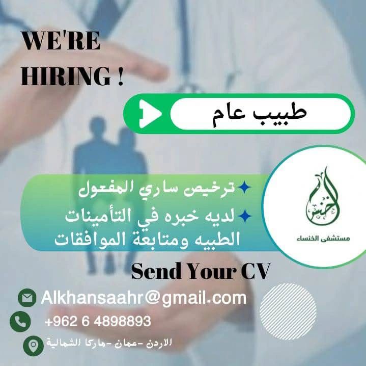 تعلن مستشفى الخنساء عن حاجتها إلى طبيب عام للعمل ضمن كوادرها الطبية في مدينة إربد – الأردن.