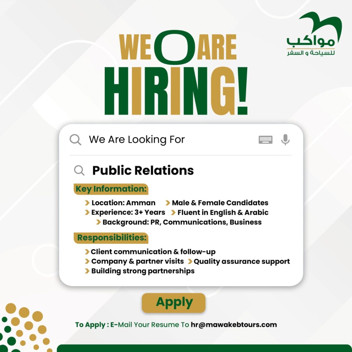 • خبرة لا تقل عن 3 سنوات في العلاقات العامة أو إدارة العملاء.