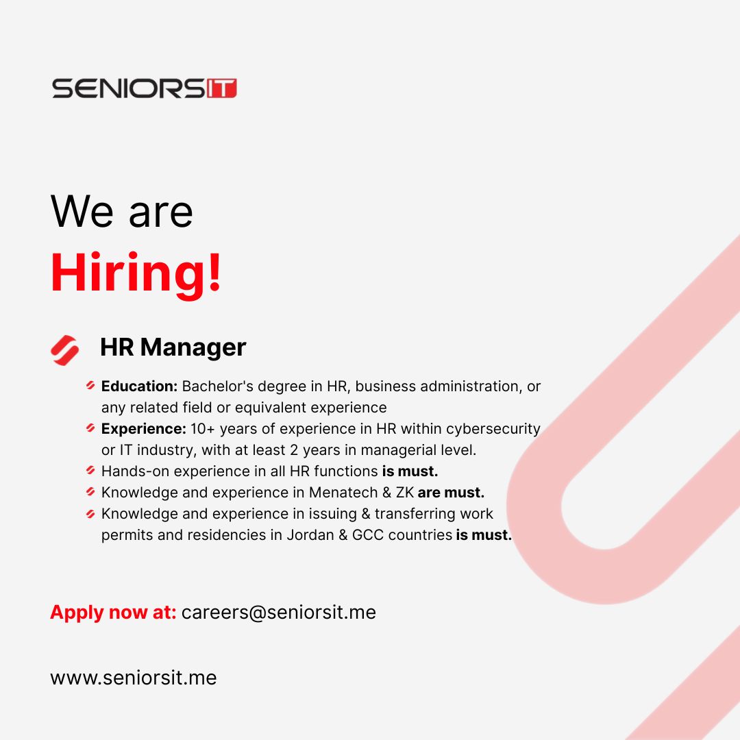 📢 فرصة وظيفية: مدير موارد بشرية – Seniors IT – الأردن 2025