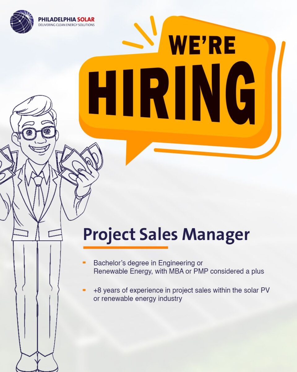 تعلن شركة Philadelphia Solar، الرائدة في حلول الطاقة المتجددة، عن توفر شاغر وظيفي عاجل لتعيين: