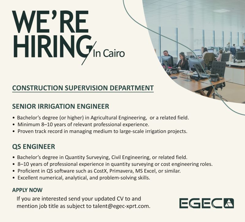 تعلن شركة EGECA عن توفر وظائف في قسم الإشراف على البناء بمدينة القاهرة لعام 2025، وهي فرصة مميزة للمهندسين المؤهلين في التخصصات التالية: