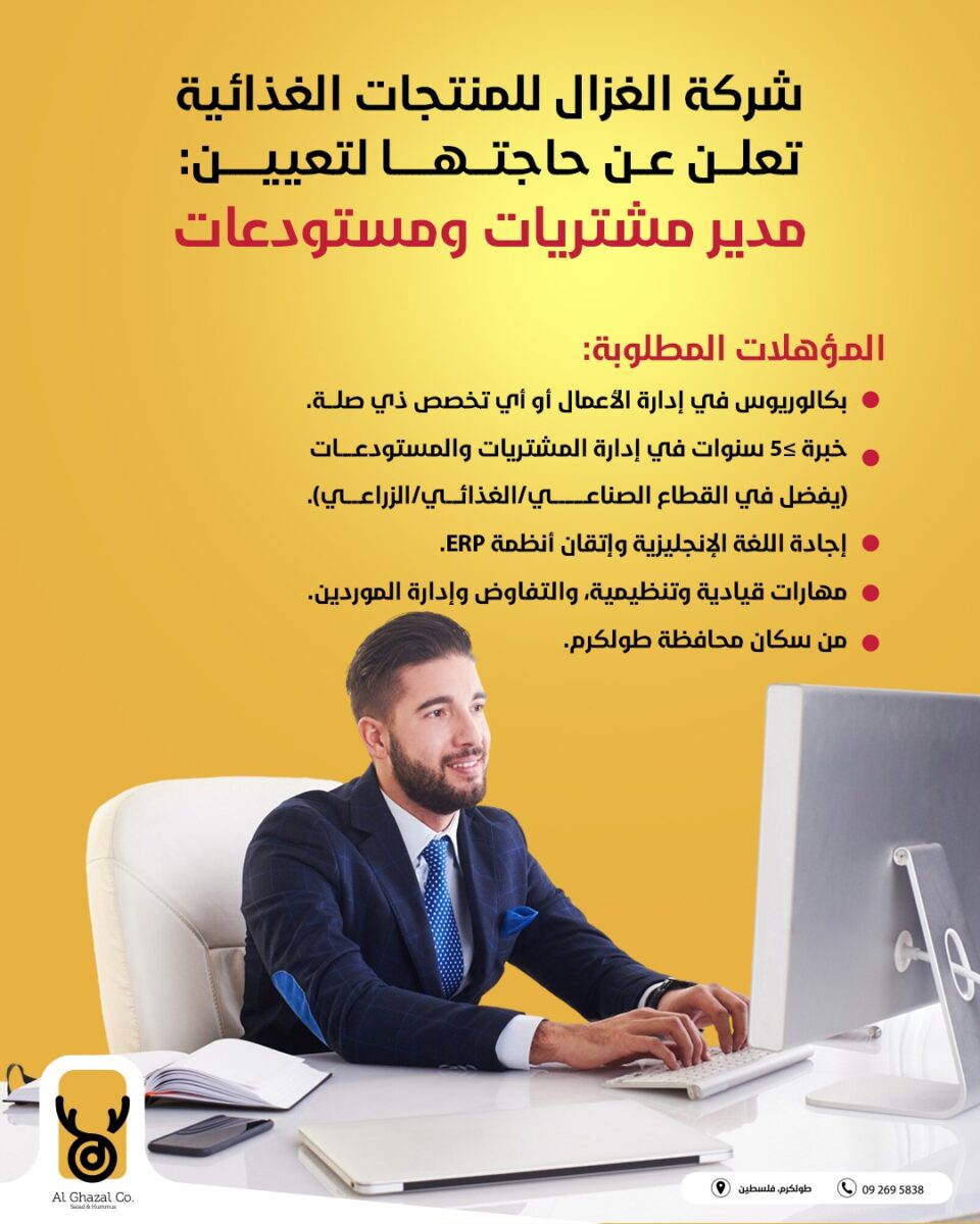 وظائف مدير مشتريات ومستودعات | الغزال طولكرم 2025