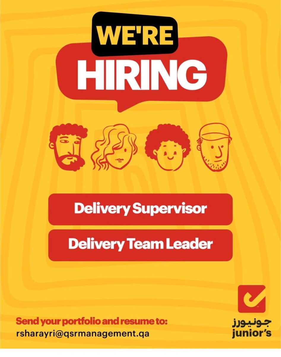 📢 وظائف إشراف توصيل – مطاعم جونيورز – قطر 2025