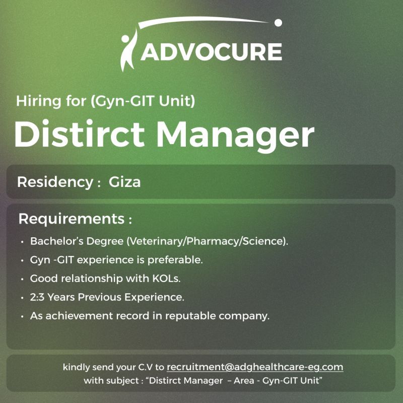 تعلن شركة ADVOCURE عن حاجتها لتعيين مدير منطقة ضمن وحدة Gyn-GIT للعمل في محافظة الجيزة.