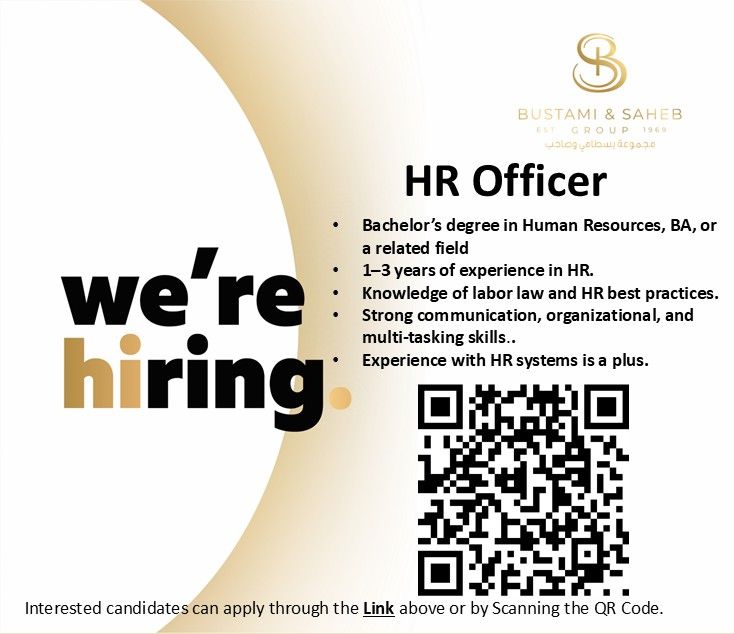 📢 فرصة عمل لدى Bustami & Saheb Group في العاصمة الأردنية عمّان لتعيين HR Officer ضمن فريق ديناميكي ومهني.
