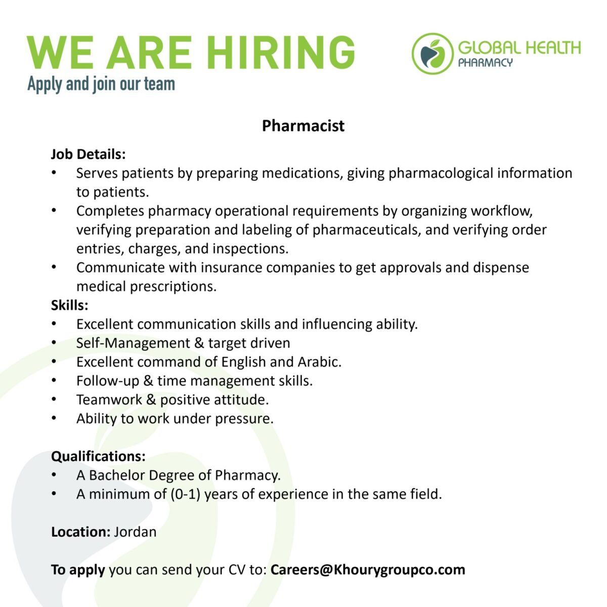 📢 وظائف صيدلة في الأردن 2025 – Global Health Pharmacy