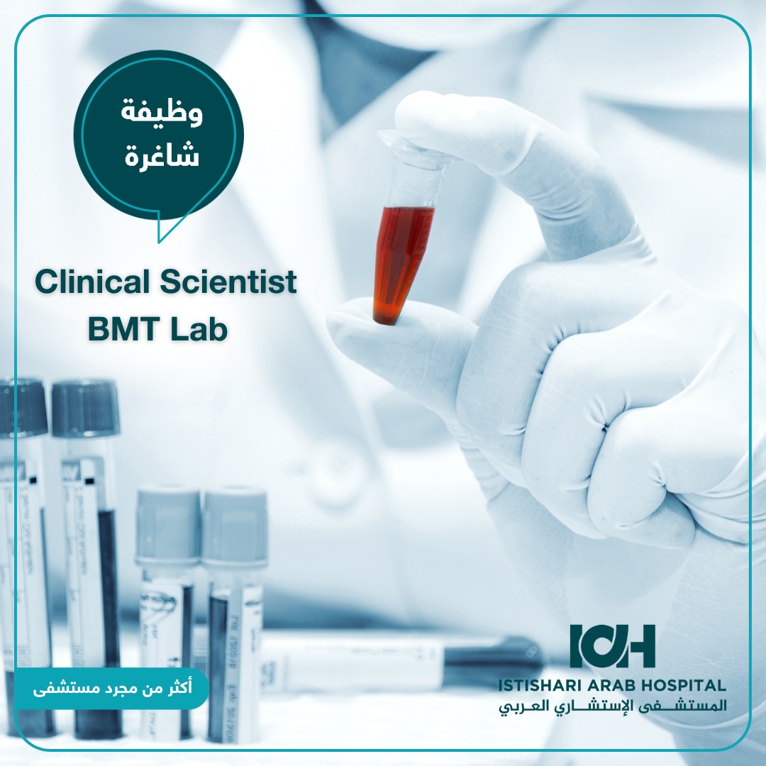 يعلن مستشفى الاستشاري العربي (Istishari Arab Hospital) في رام الله والبيرة عن حاجته إلى Clinical Scientist بدوام كامل أو جزئي للانضمام إلى مختبر زراعة نخاع العظم (BMT Lab).