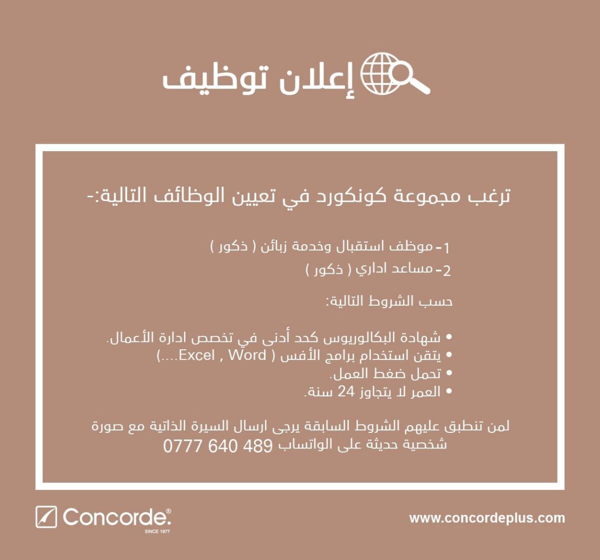 تعلن مجموعة كونكورد عن توفر فرص عمل في التخصصات التالية لعام 2025: