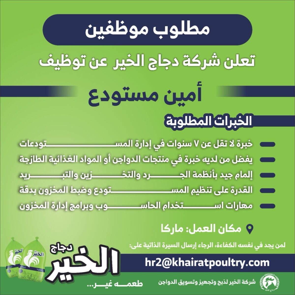 وظائف شاغرة | أمين مستودع | دجاج الخير | ماركا 2025