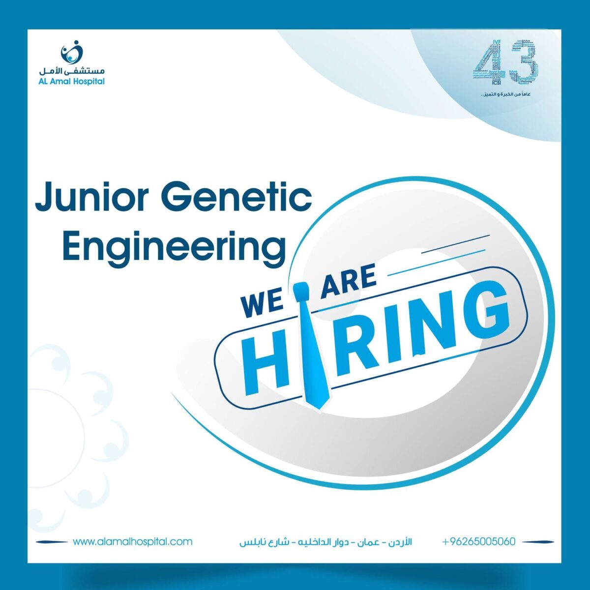 وظائف مهندس وراثة – Al Amal Hospital – عمان 2025