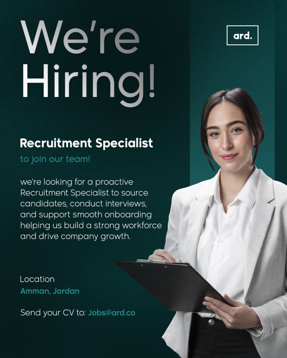 إذا كنت تبحث عن فرصة مهنية في مجال التوظيف، انضم لفريقنا في ARD كـ Recruitment Specialist في عمّان، الأردن لعام 2025.