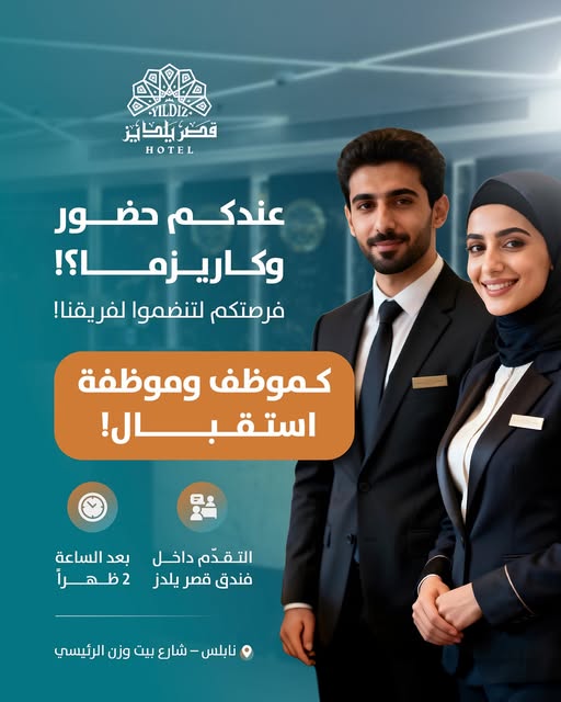 وظائف موظف استقبال قصر يلديز نابلس 2025