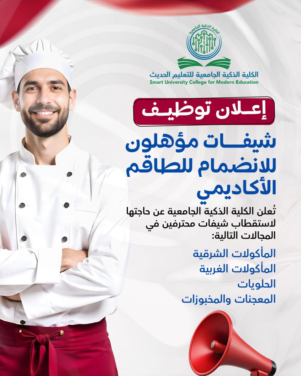 📢 إعلان توظيف – شيفات محترفون للانضمام إلى الطاقم الأكاديمي