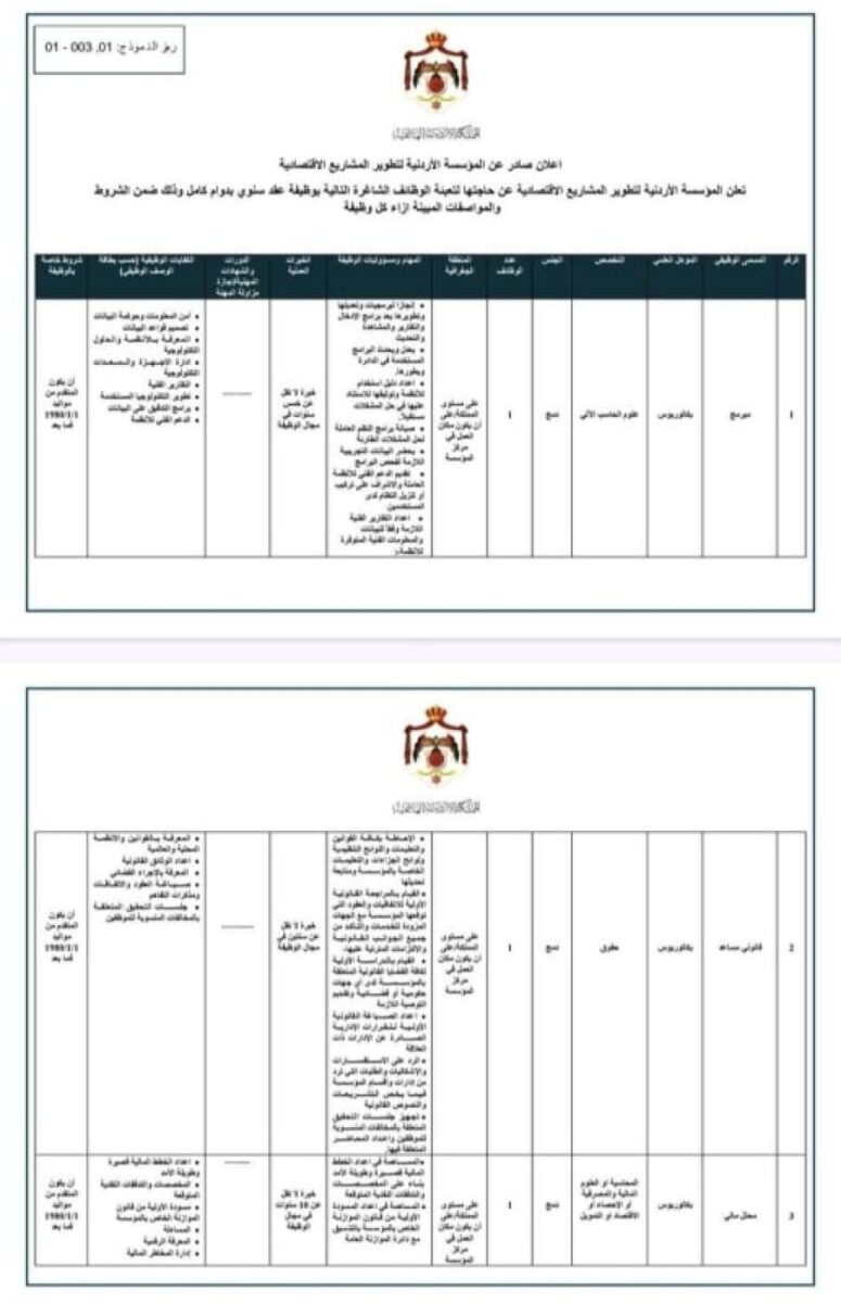 فرص وظيفية في المؤسسة الأردنية لتطوير المشاريع الاقتصادية لعام 2025