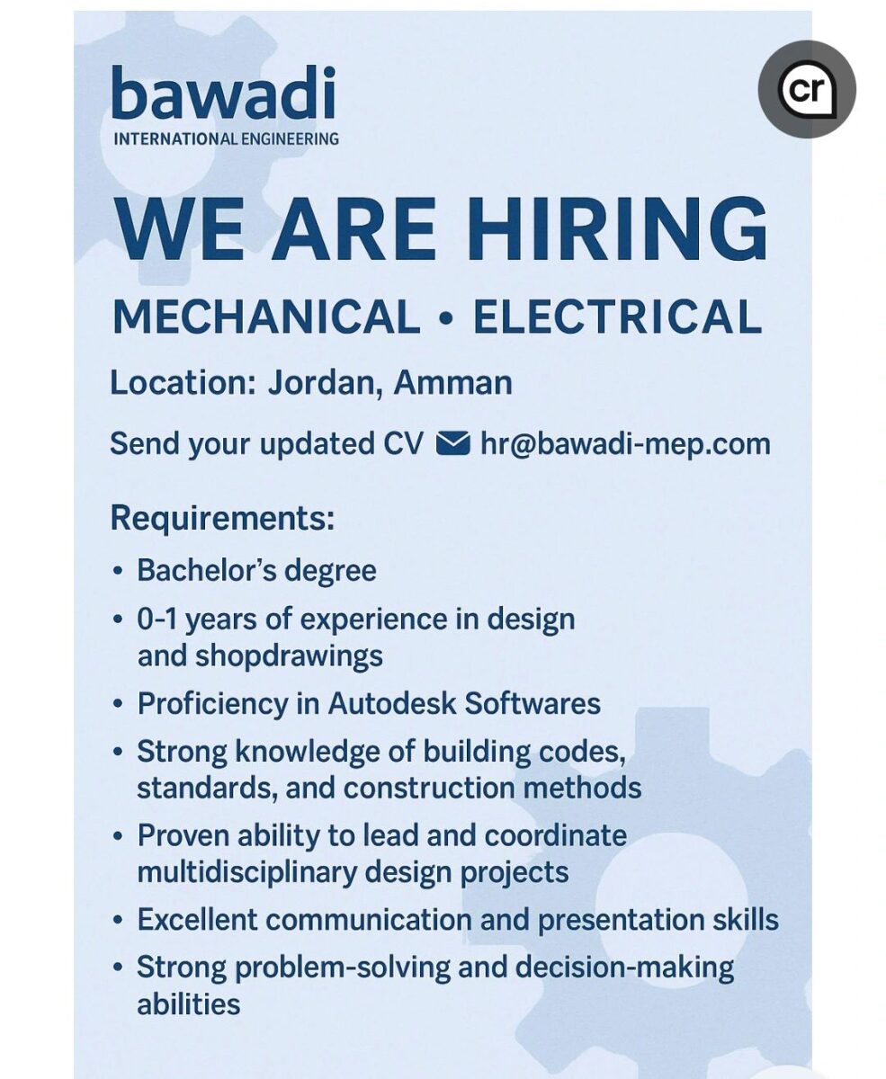 وظائف هندسية 2025 في بوادى – ميكانيك وكهرباء في عمان
