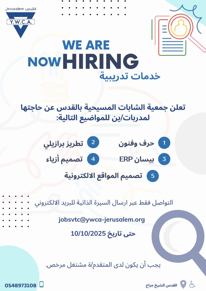 إعلان توظيف – مدربين ومدربات | جمعية الشابات المسيحية – القدس 2025
