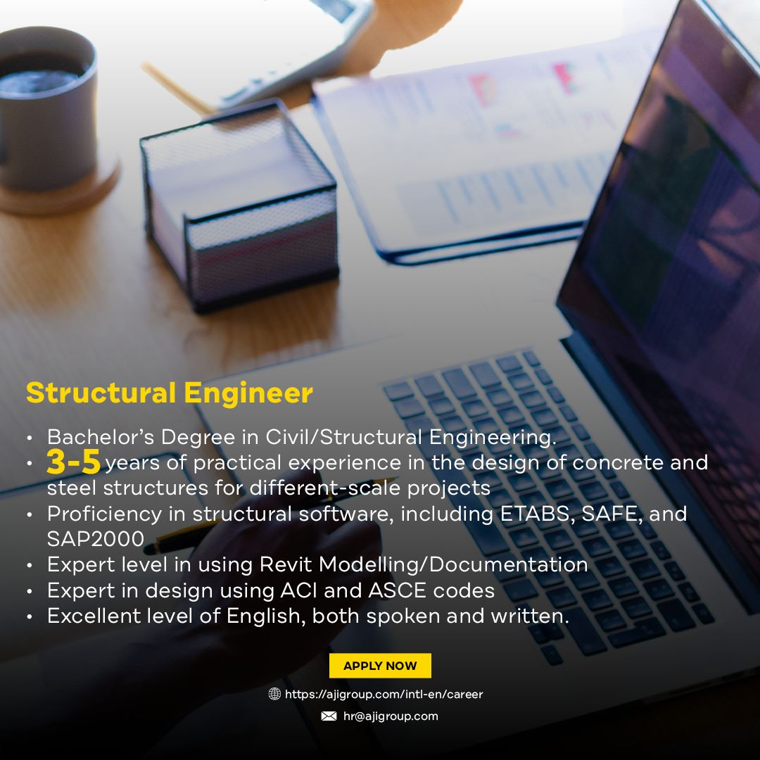 تعلن AJi Group عن حاجتها لتوظيف مهندس تصميم إنشائي Intermediate بمدينة عمان لعام 2025.