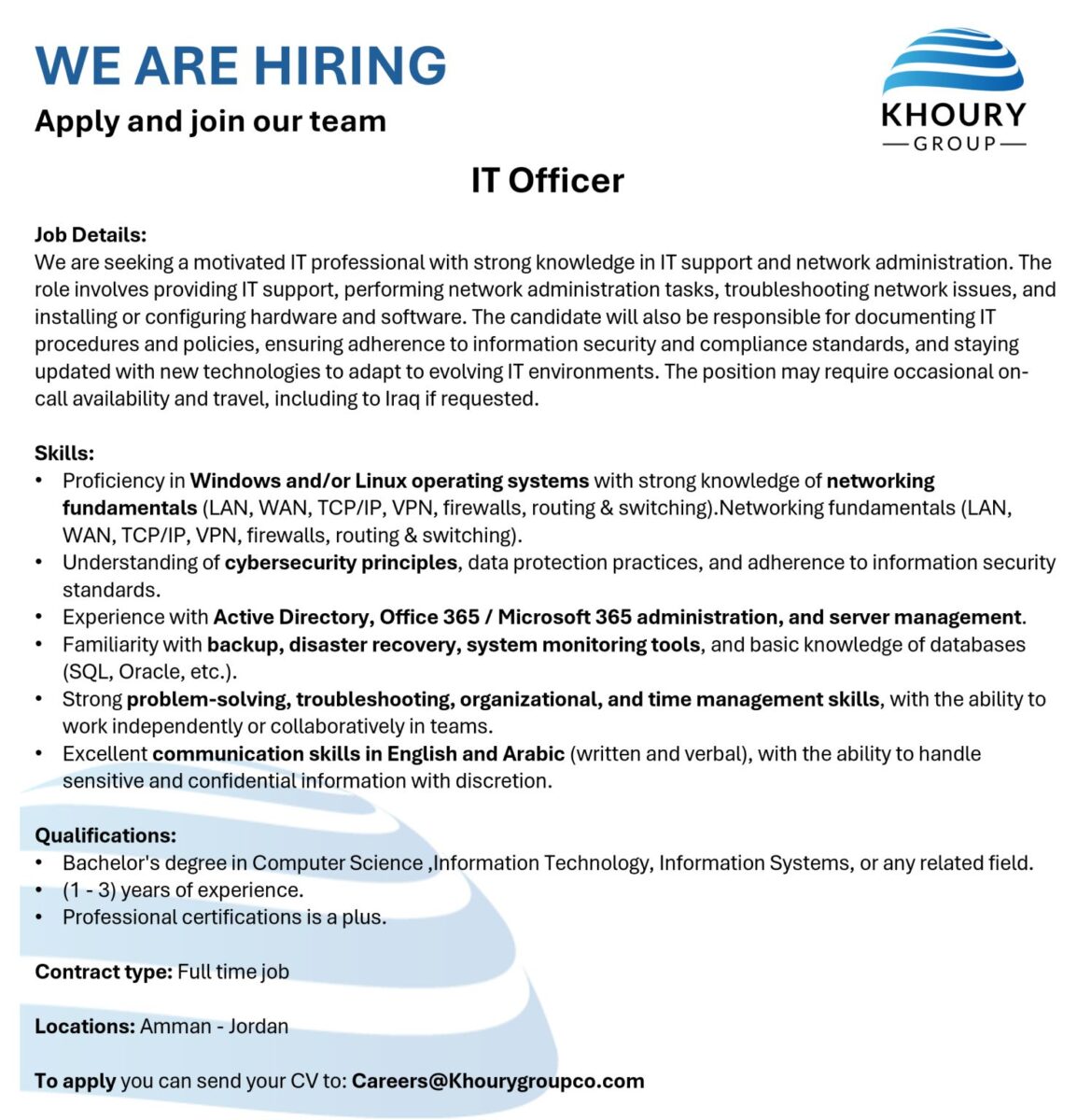 وظائف IT Officer في Khoury Group – عمان 2025