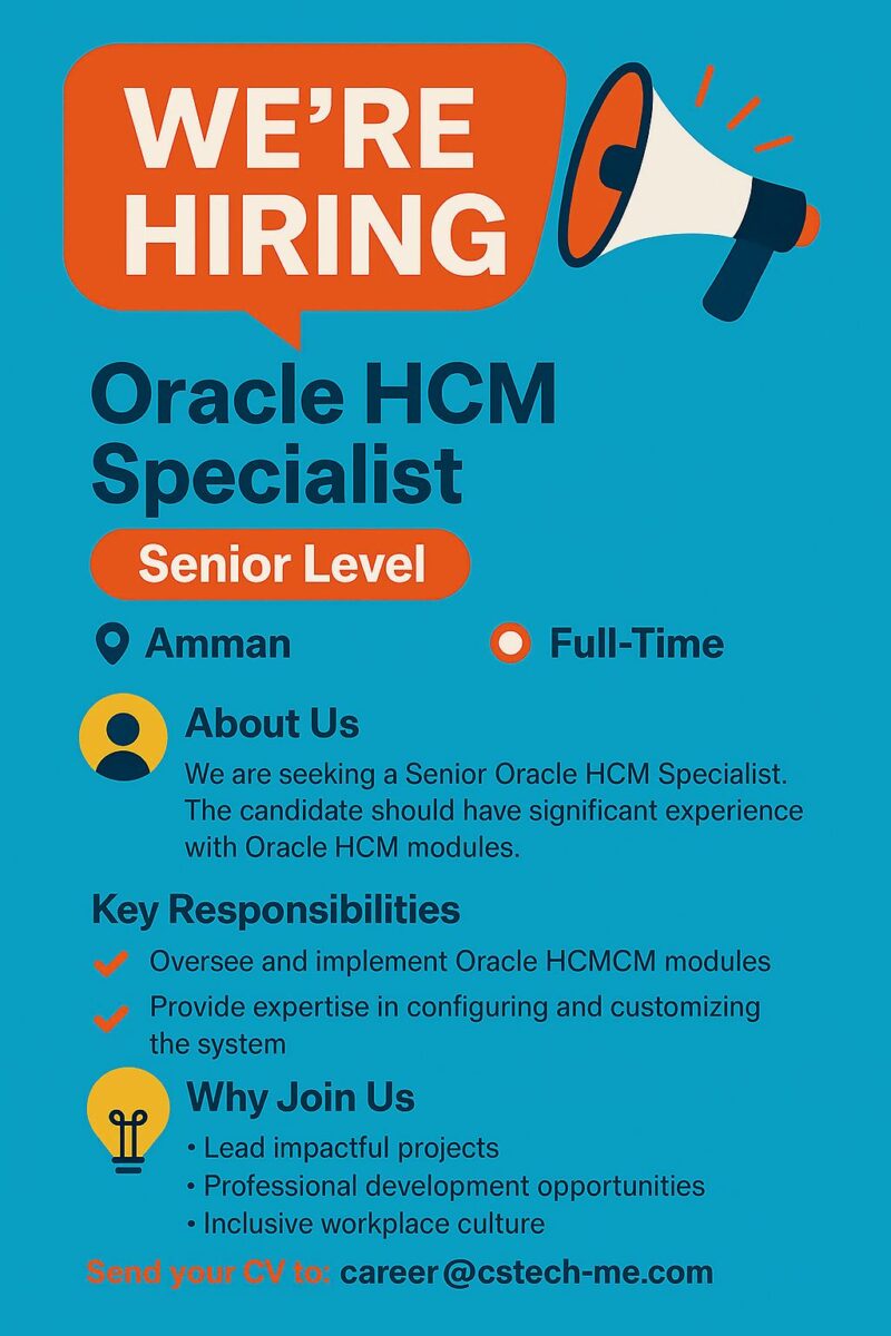 وظائف Oracle HCM – شركة CS-Tech في عمّان 2025