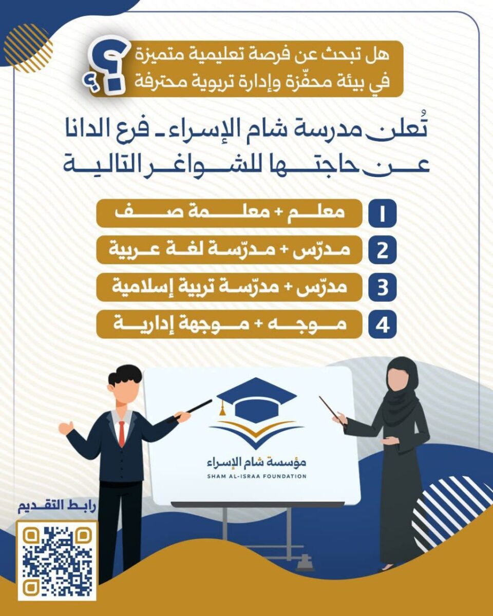 وظائف مدرسين مدرسة شام الإسراء الدانا 2025
