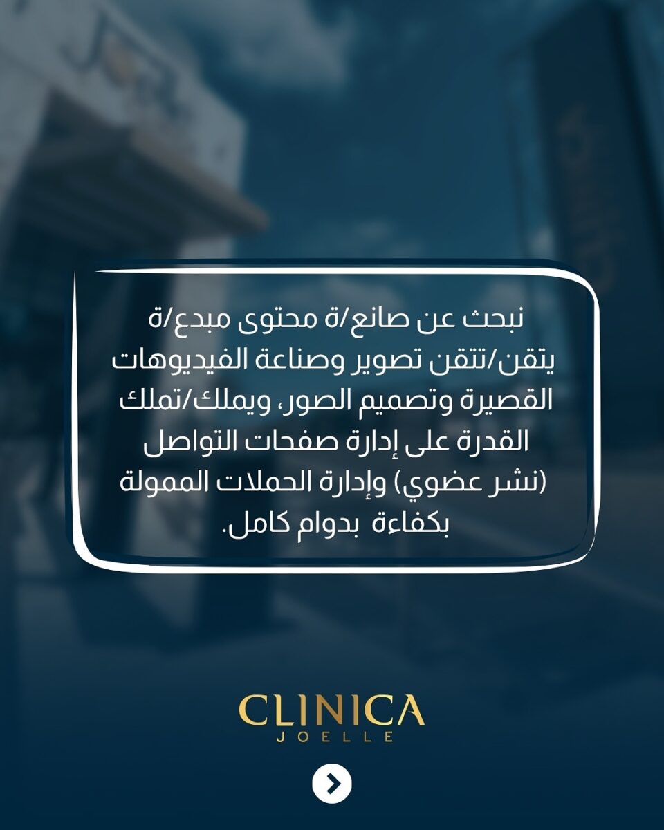 وظائف صانع محتوى Clinica Joelle رام الله 2025