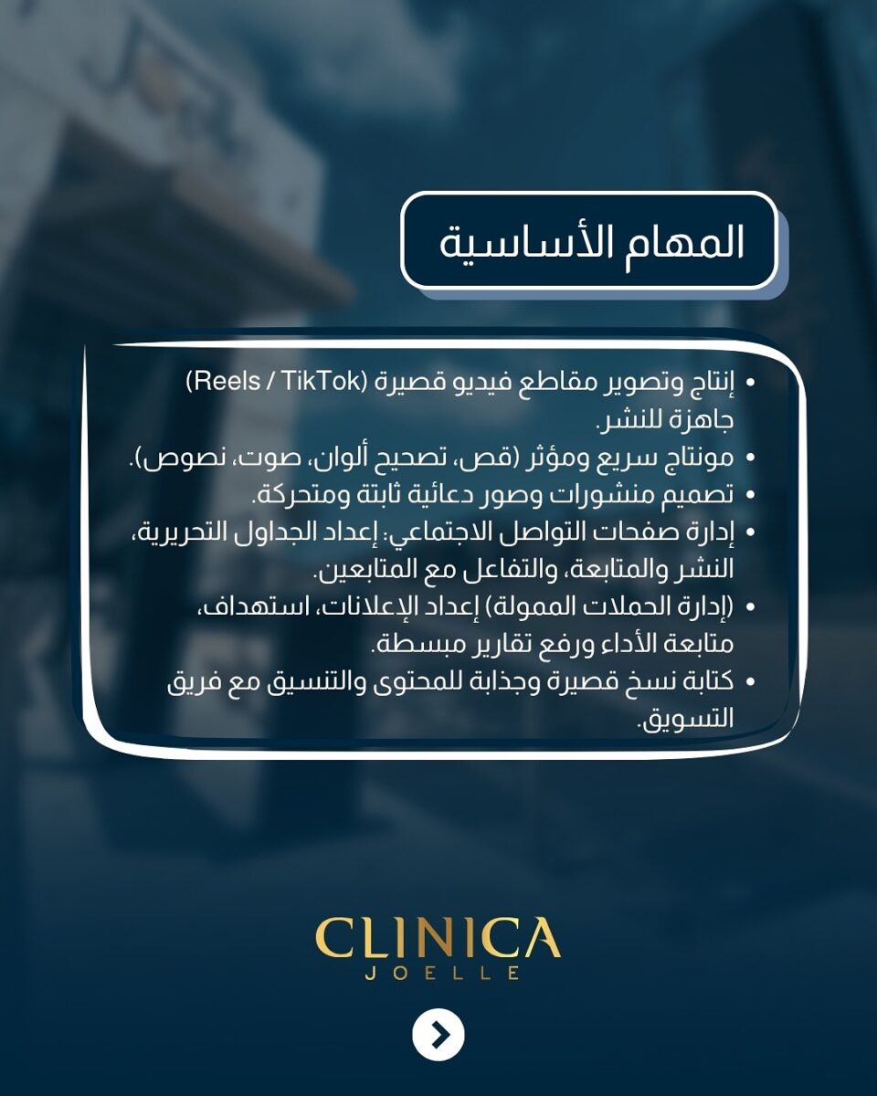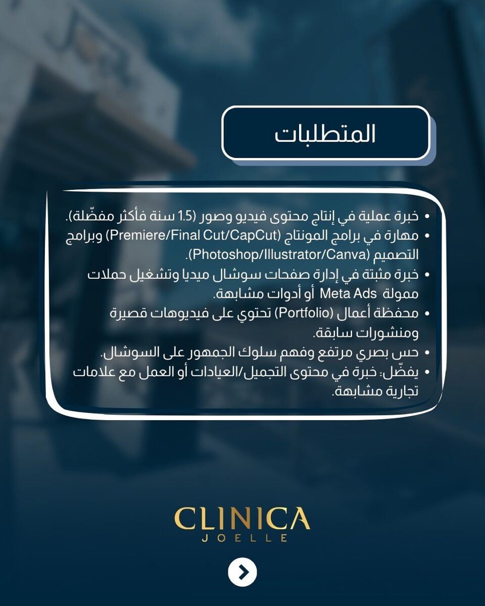 - يُفضل خبرة في محتوى التجميل أو العيادات أو العمل مع علامات تجارية مشابهة.