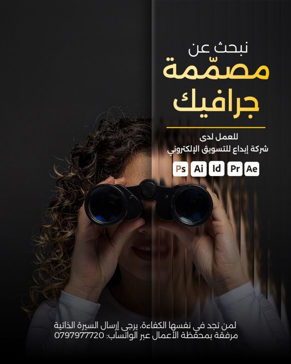 تعلن شركة في عمان – المقابلين – شارع الحرية عن توفر وظائف جرافيك ديزاين لعام 2025، بتركيز على تصميم الفيديوهات والريلز.