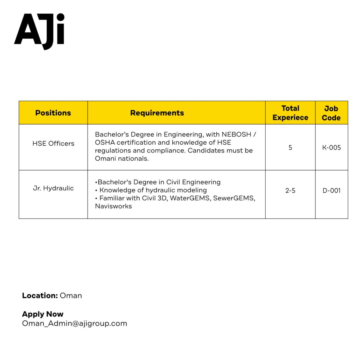 وظائف هندسية في عمان 2025 | AJI Group