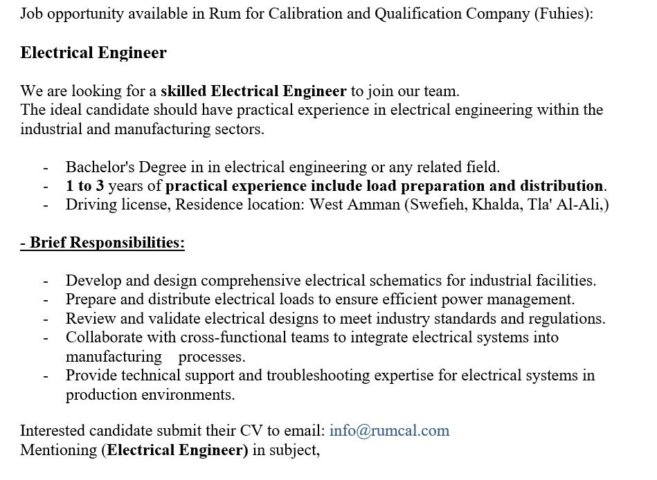 وظائف مهندسين كهرباء | رم للمعايرة | عمان 2025